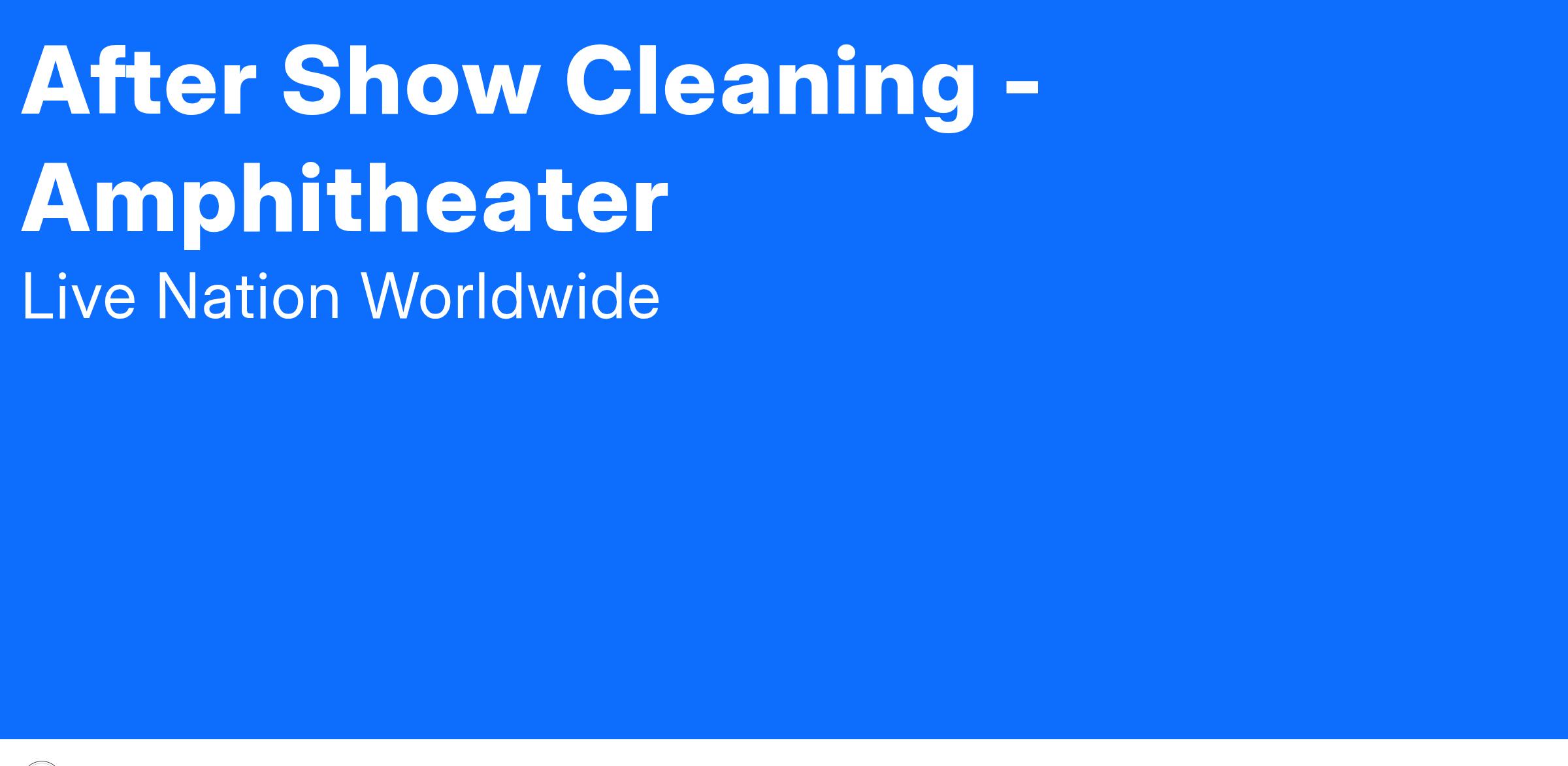 Responsible for coming in after the show ends and cleaning the venue of trash left in the venue and parking areas.