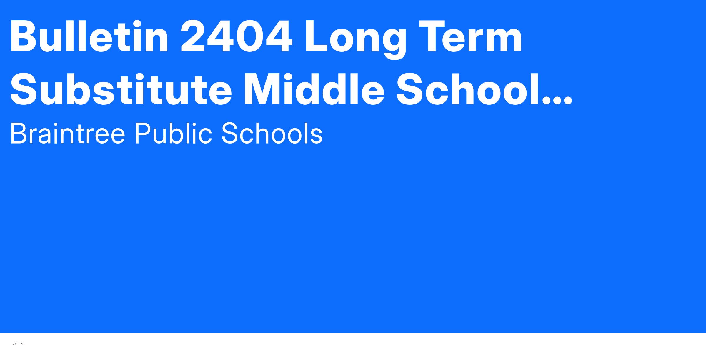 The Braintree Public School District is seeking a dynamic full-time middle school Long Term Substitute for Instrumental Music