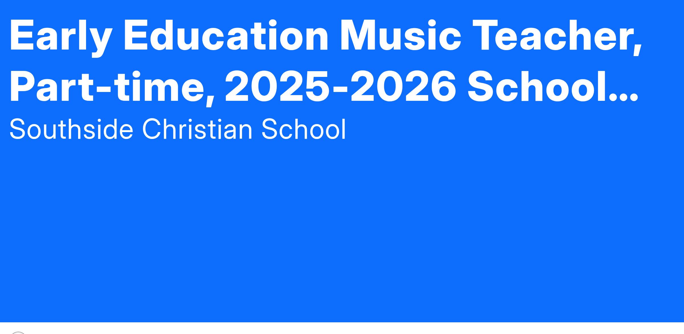 SCOPE OF RESPONSIBILITIES: Reporting to the Early Education Principal, the early education music teacher will effectively teach music from a biblical worldview while managing a classroom and building positive relationships with students and parents. The music teacher will teach music to Early Education students.