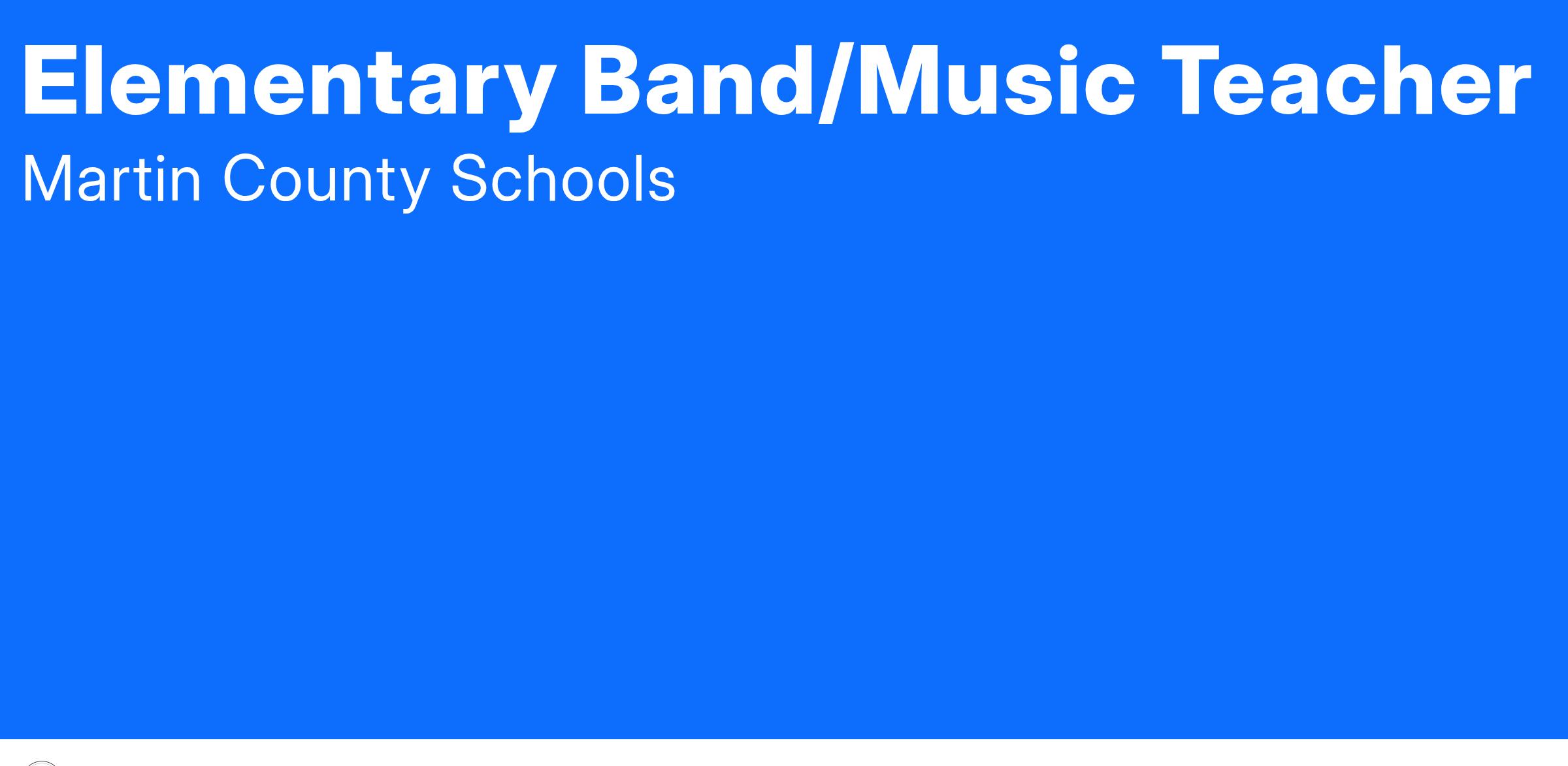 Martin County Schools is currently accepting applications for an Elementary Band/Music Teacher for the upcoming school year. The specific worksite is to be determined. (Start Date: August 15, 2025.) See the job description below for more information.