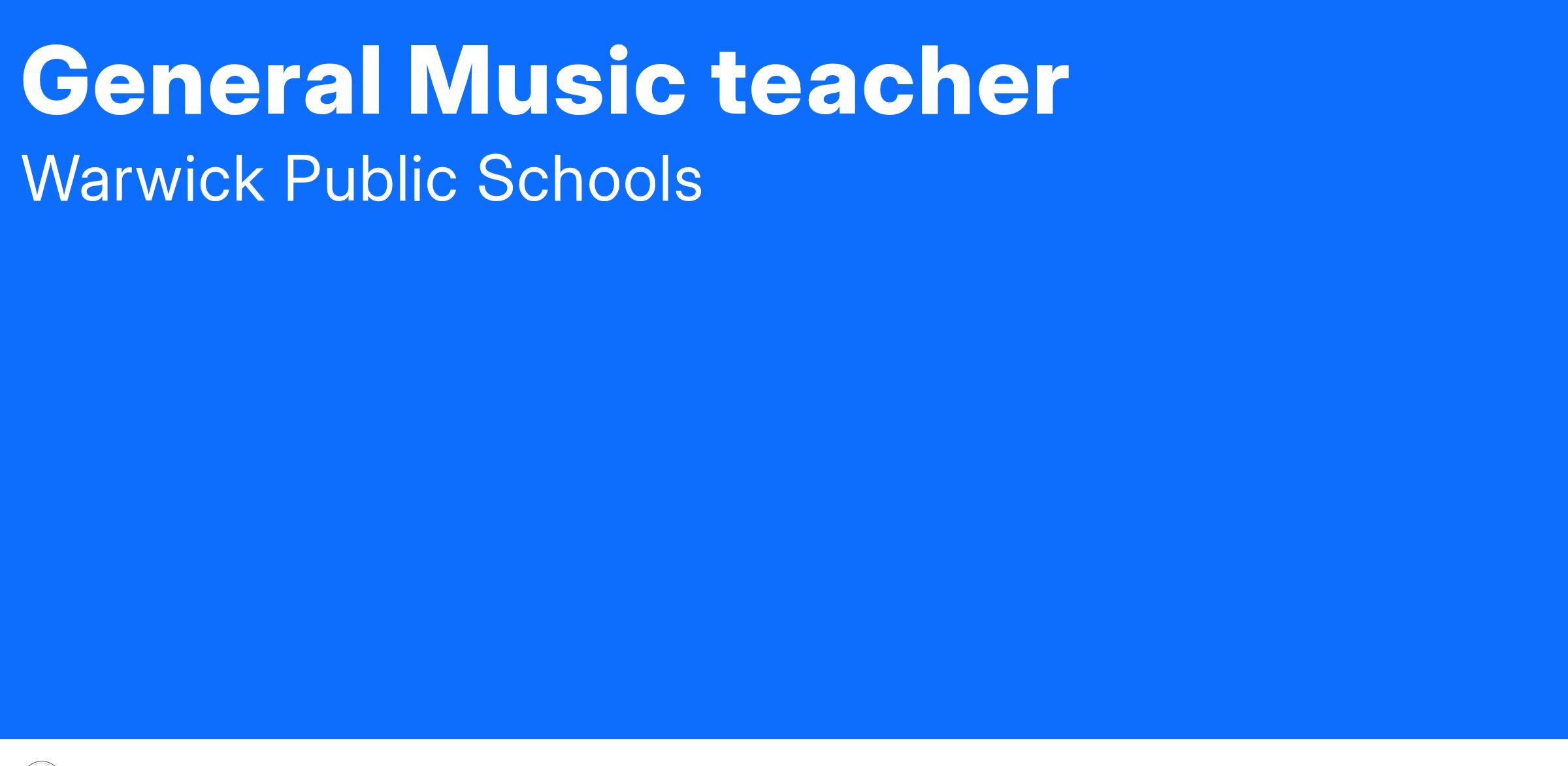 Warwick Public Schools is currently seeking a certified music teacher for a full time general music position at Wyman and Greenwood
