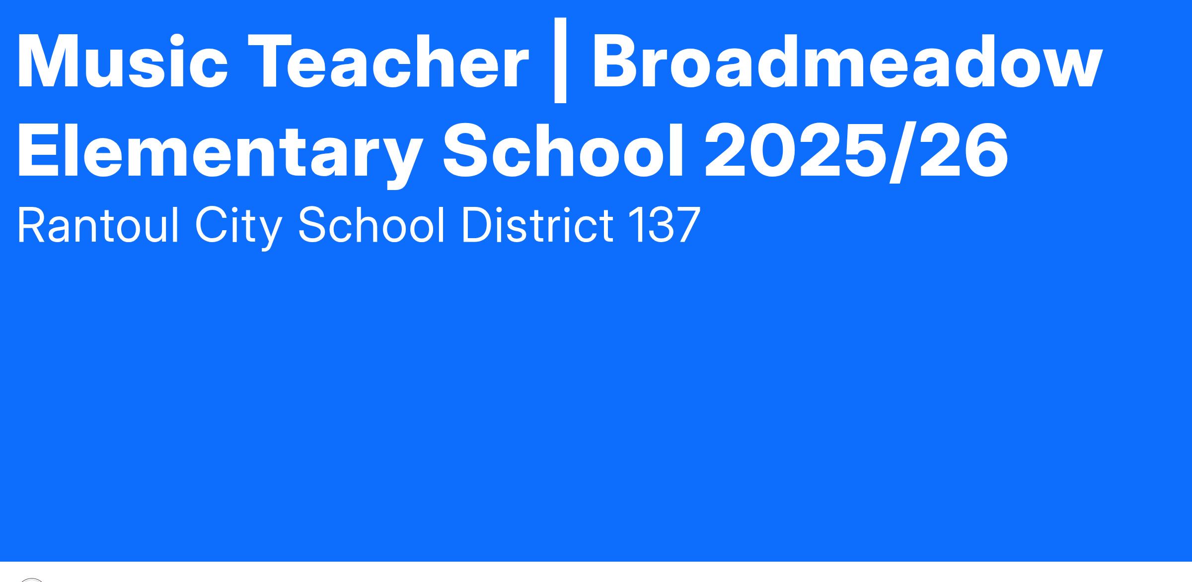 Rantoul City Schools is hiring Music Teacher at our Broadmeadow Elementary School beginning with the 2025/26 school year.
