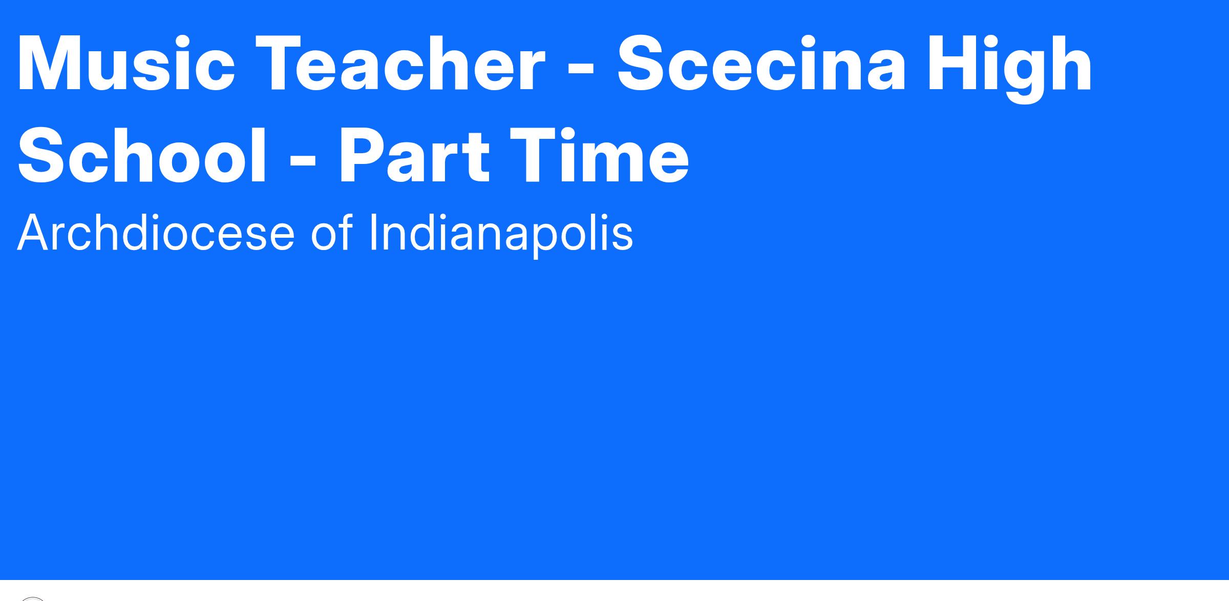 Scecina Memorial High School, located on the East side of Indianapolis, is seeking a committed Christian educator to fill the part-time position of a Music teacher for the Spring Semester, 2025. The ideal candidate will work with a diverse student population to support the academic growth of our students. The successful candidate will hold a valid Indiana teaching license or be eligible for an Indiana teaching license, love working with high school students, and have a passion for teaching music. The position includes both instrumental and choral groups.