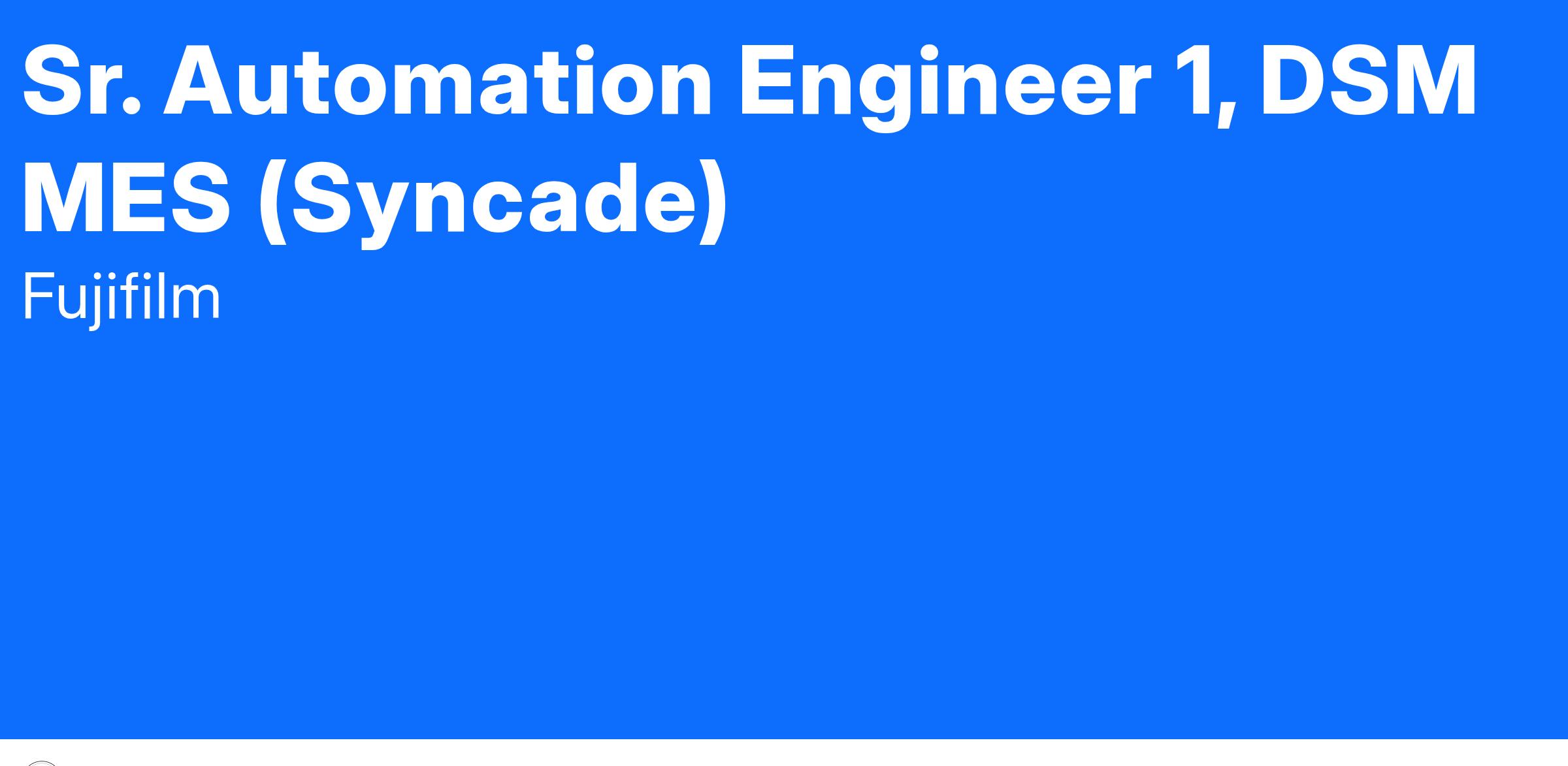 The Senior Automation Engineer 1, MES provides support to the Drug Substance Manufacturing (DSM) facility. This includes implementation of changes to the Automation systems, updating design documents, executing testing, troubleshooting events, and being a part of Automation on-call support. This role will lead projects and handle complex changes while coordinating with other internal and external groups